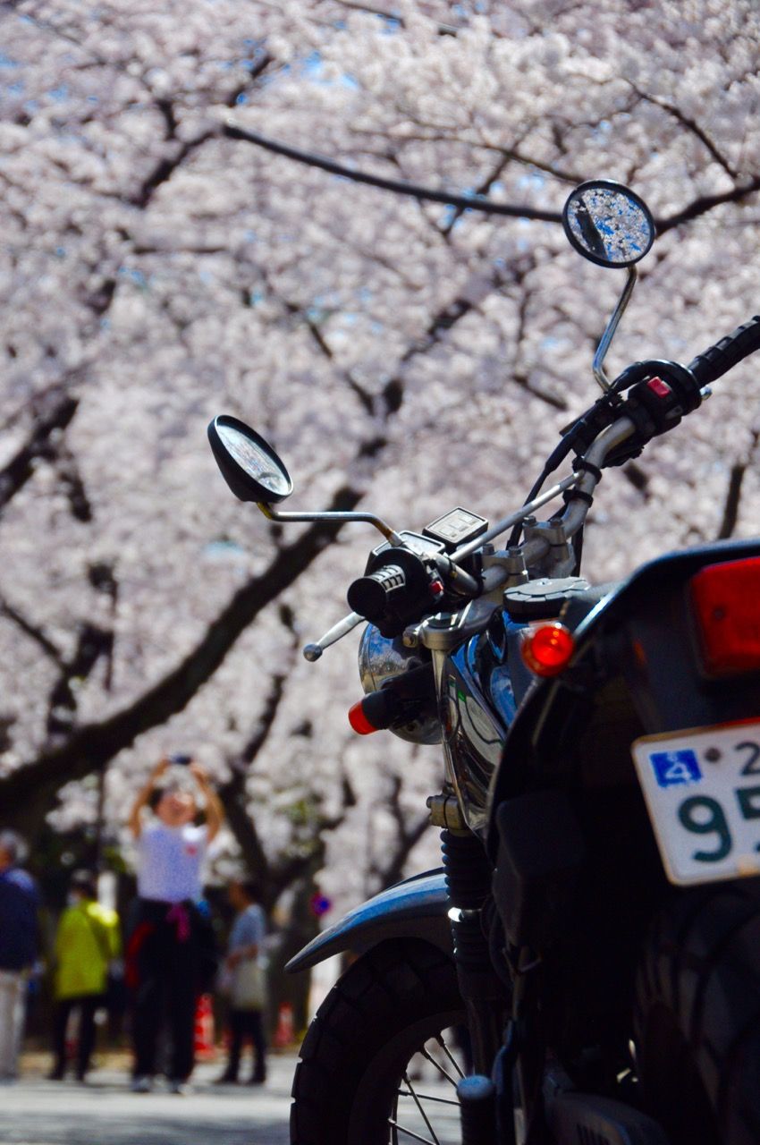 YAMAHA TW200 桜の季節は都内の桜の名所をバイクで巡る。